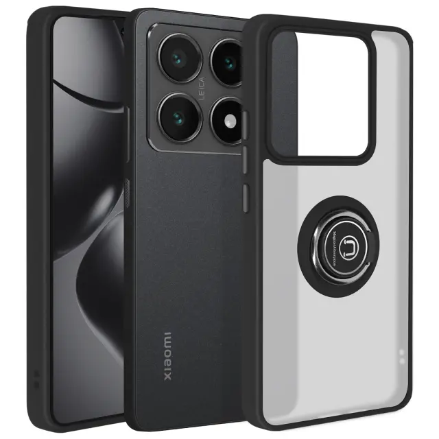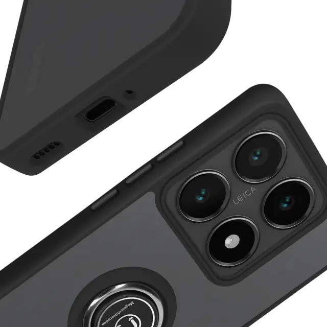 Ohišje za Xiaomi 14T Kovinsko obročno video držalo, Črna