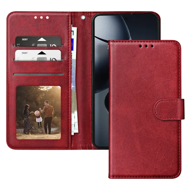 Ohišje za Xiaomi 14T Pro Clapet Wallet in stabilno video držalo, Bordeaux