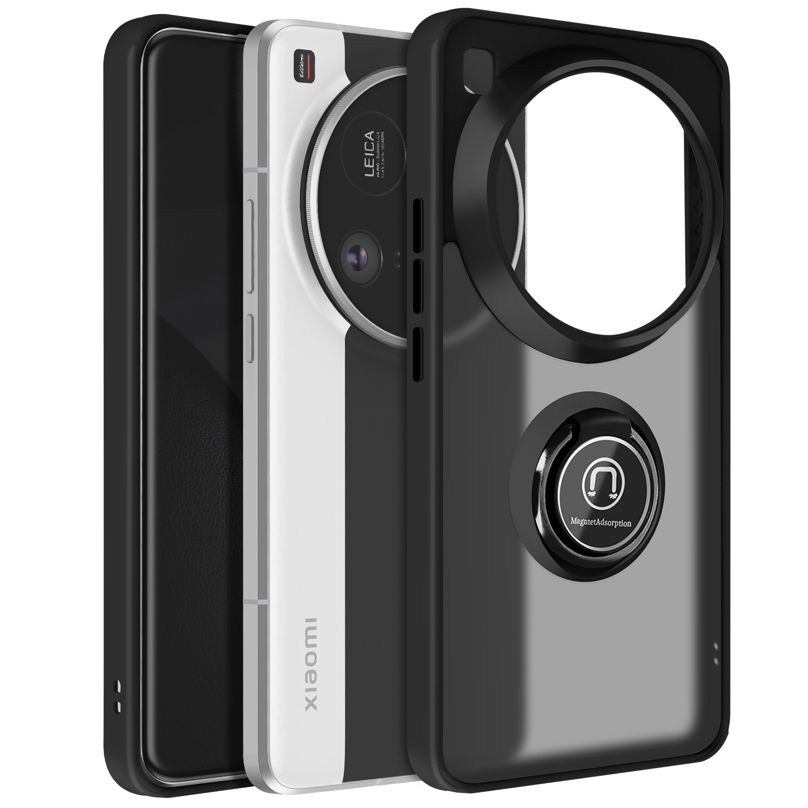 Ohišje za Xiaomi 15 Ultra Magnetic Ring prozoren hrbet, Črna
