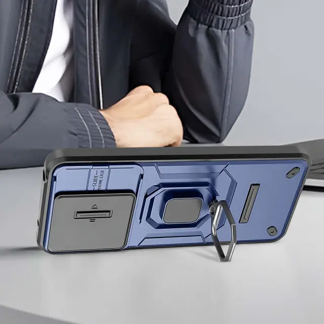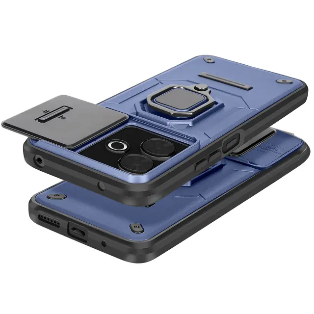 Ohišje za Xiaomi Redmi 13 Ring Support Sliding Camera Cover, Modra noč