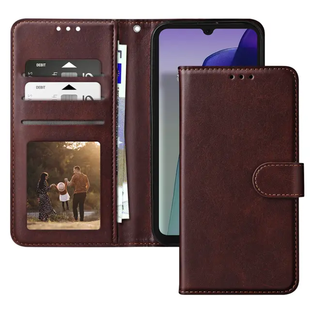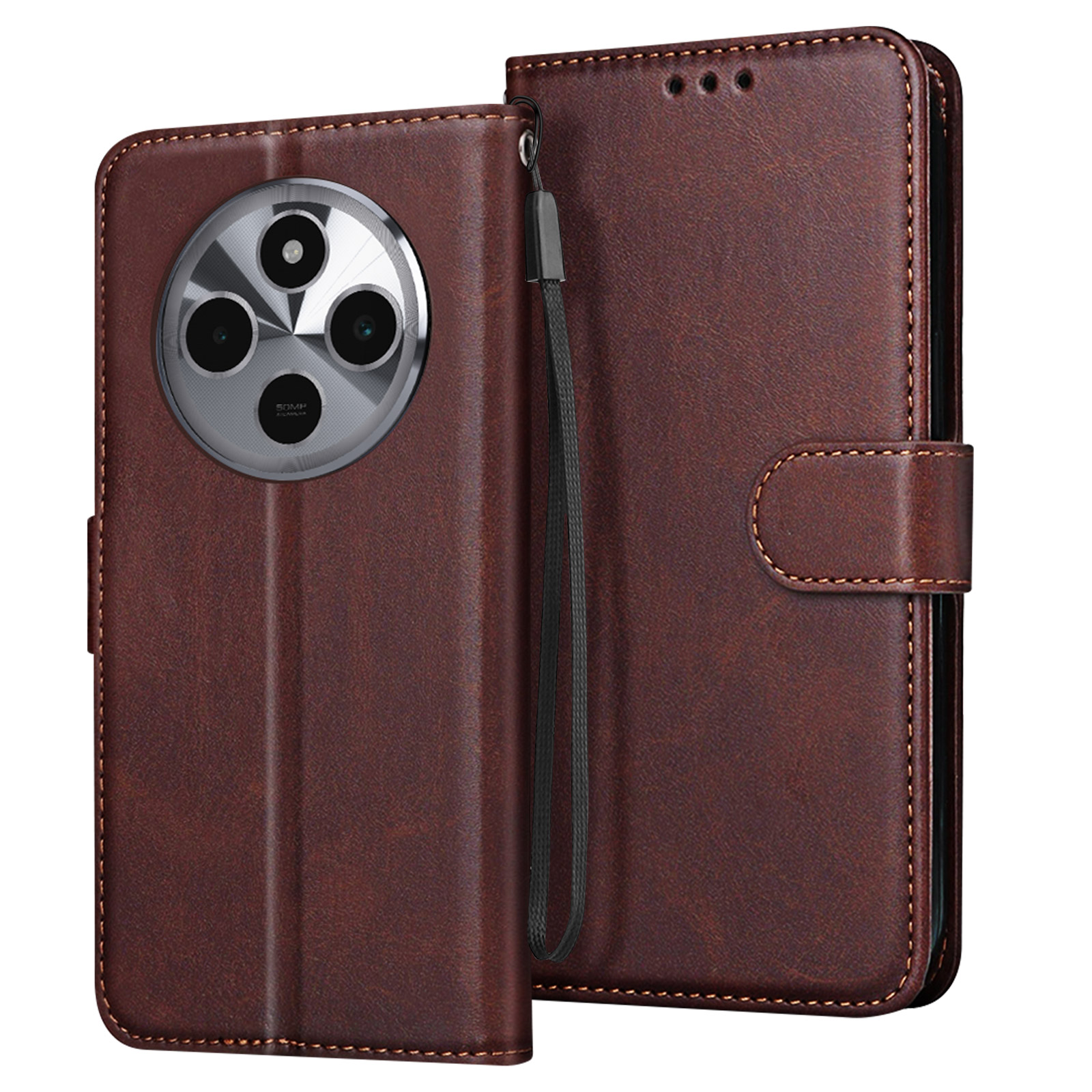 Ohišje za Xiaomi Redmi 14C Clapet Wallet in stabilno video držalo, Temno rjava