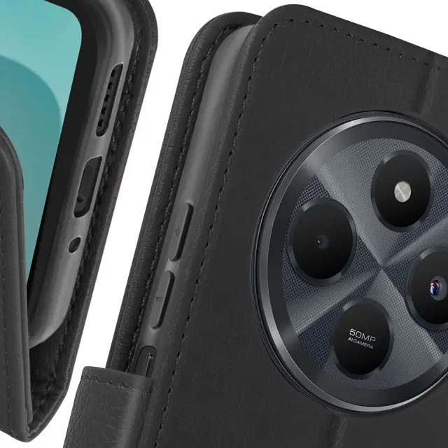 Ohišje za Xiaomi Redmi 14C Clapet Wallet in Video Holder, Črna