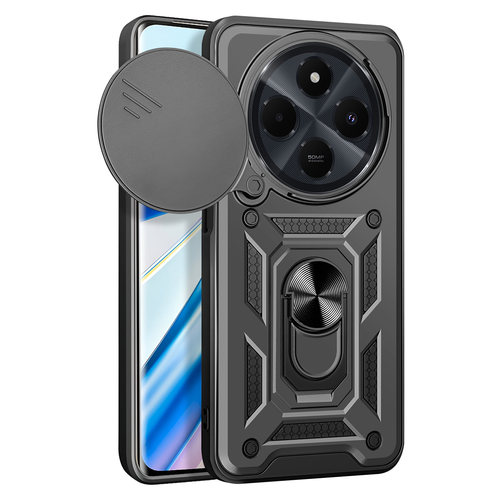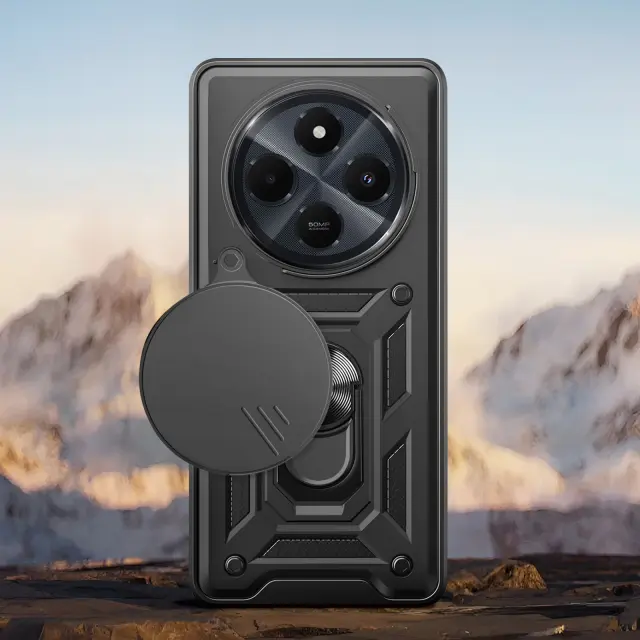 Ohišje za Xiaomi Redmi 14C Ring Support Sliding Camera Cover, Črna