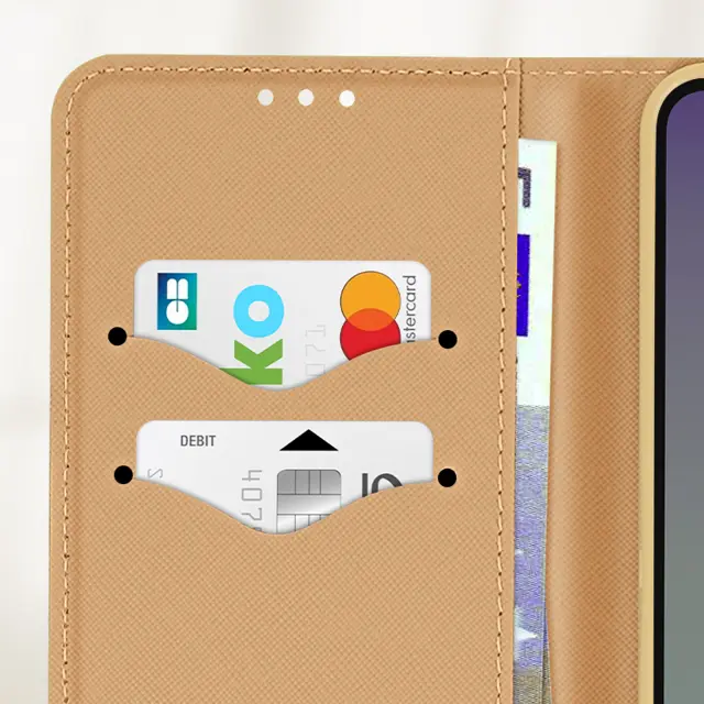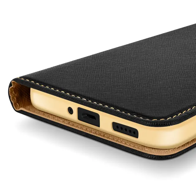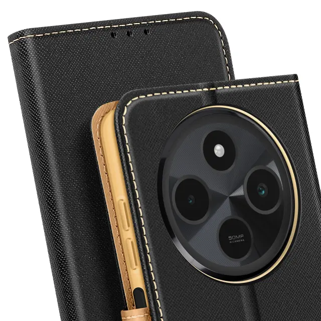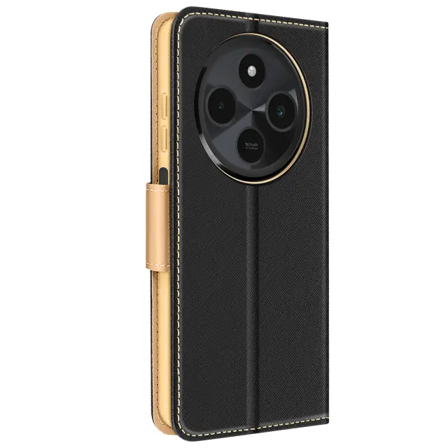 Ohišje za Xiaomi Redmi 14C Wallet Leather Saffiano Fancy, Črna / Zlata