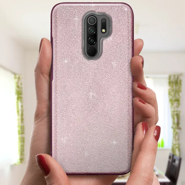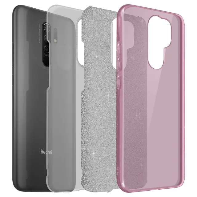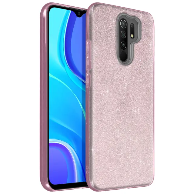 Ohišje za Xiaomi Redmi 9 Bleščice, silikonski gel s trdo plastjo, Roza