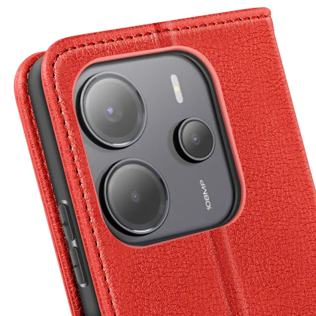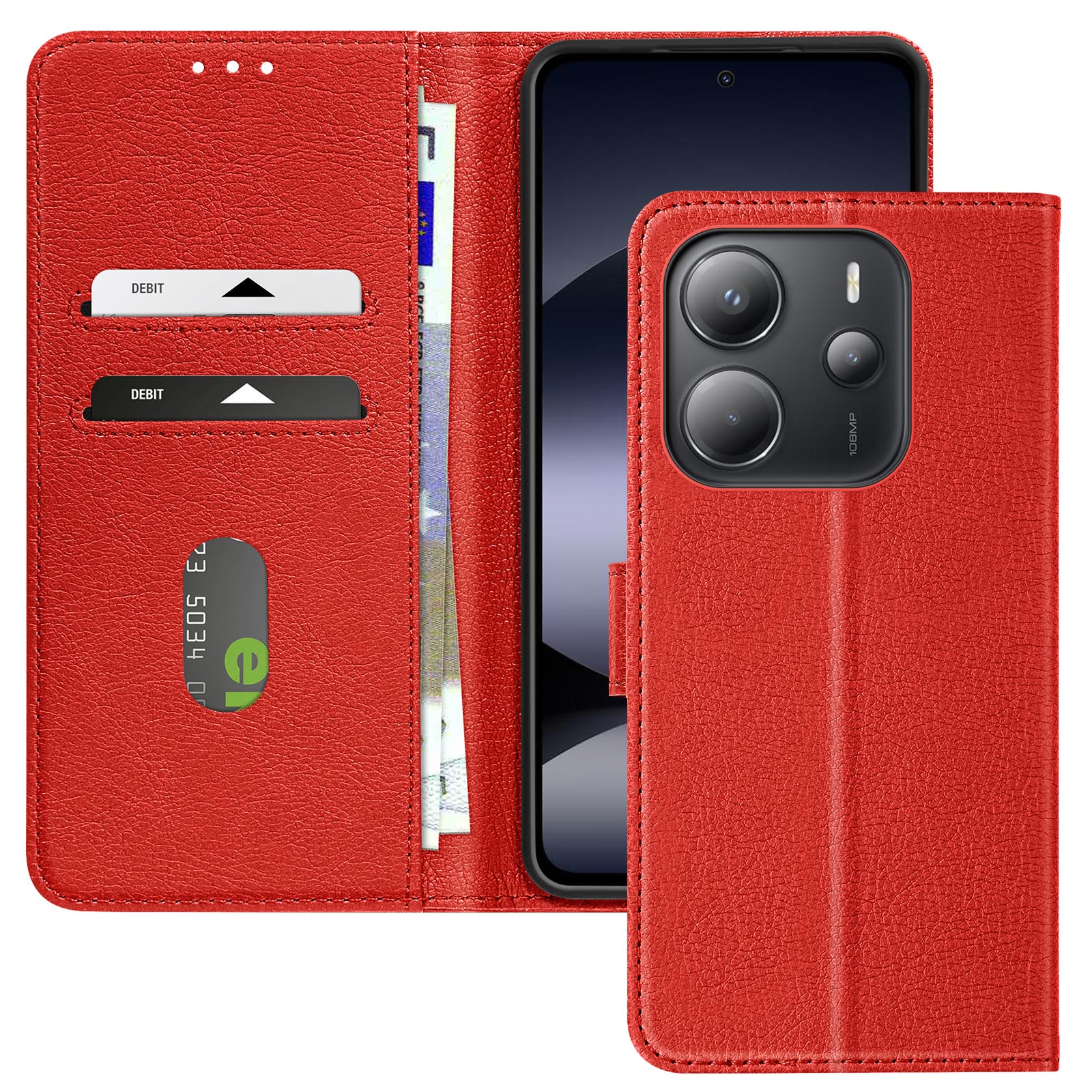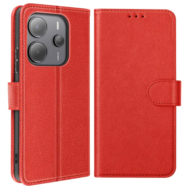Ohišje za Xiaomi Redmi Note 14 4G Clamshell denarnica in video držalo, Rdeča