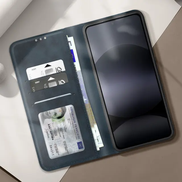 Ohišje za Xiaomi Redmi Note 14 4G Denarnica in video držalo, Modra noč