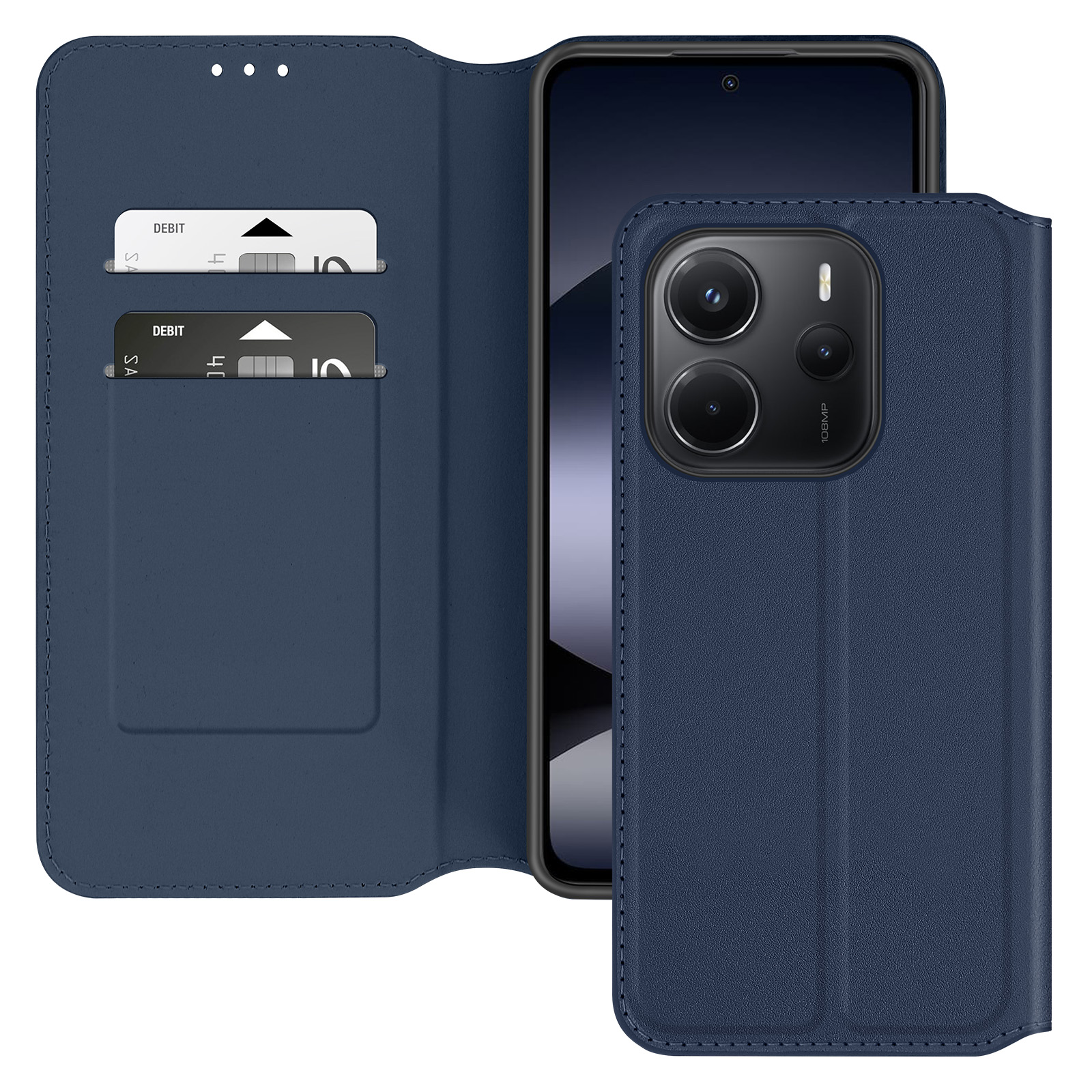 Ohišje za Xiaomi Redmi Note 14 4G ohišje za kartico Clamshell in držalo za video, Modra noč