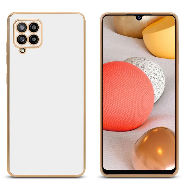 Ohišje, združljivo z Samsung Galaxy A42 5G / M42 5G in bleščeča bela - zlata - Zaščitni ovitek iz prožnega silikona TPU in z zaščito kamere