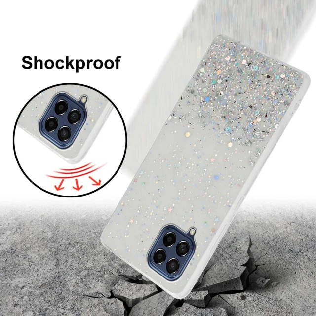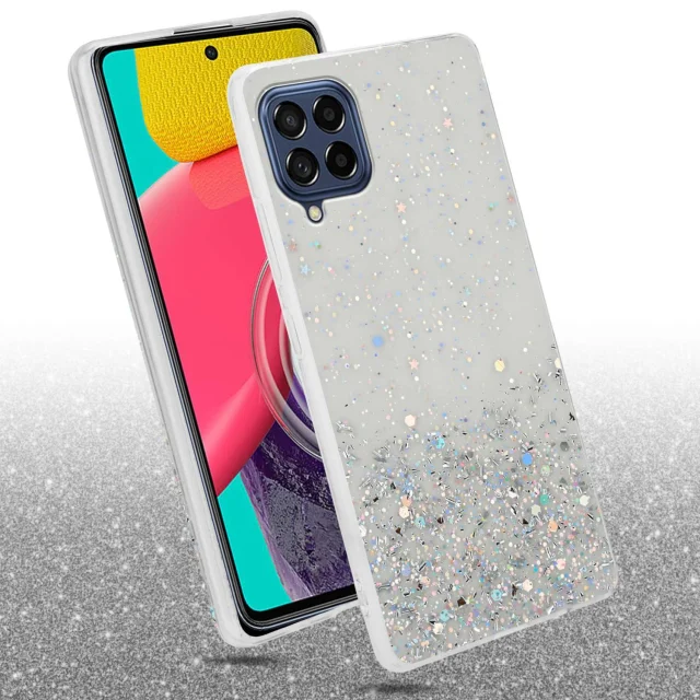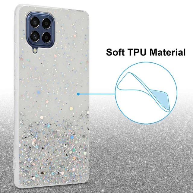 Ohišje, združljivo z Samsung Galaxy M53 5G in prozorna z bleščicami - Zaščitni ovitek iz prožnega silikona TPU s svetlečimi bleščicami