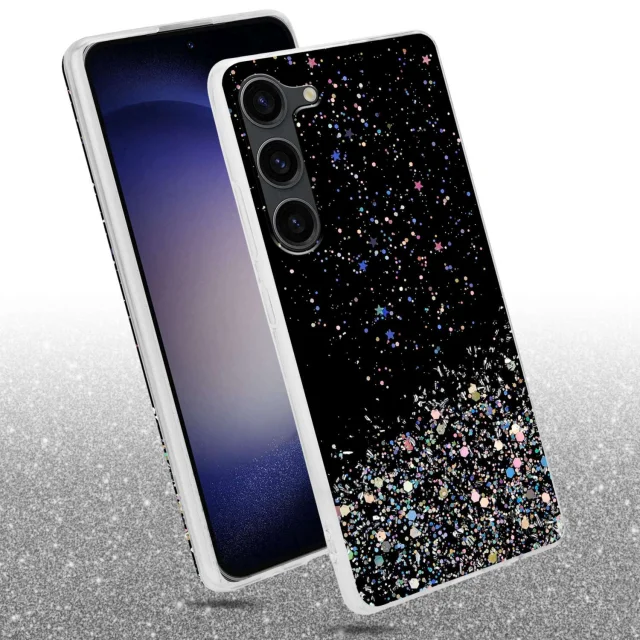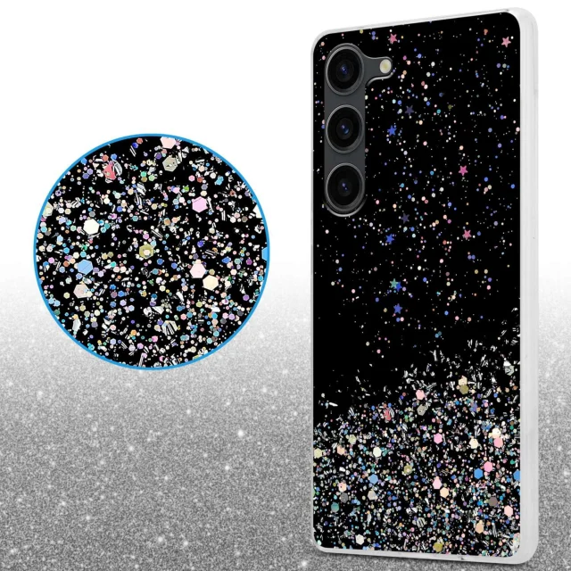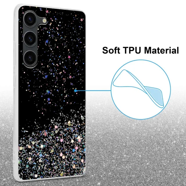 Ohišje, združljivo z Samsung Galaxy S23 in črna z bleščicami - Zaščitni ovitek iz prožnega silikona TPU s svetlečimi bleščicami