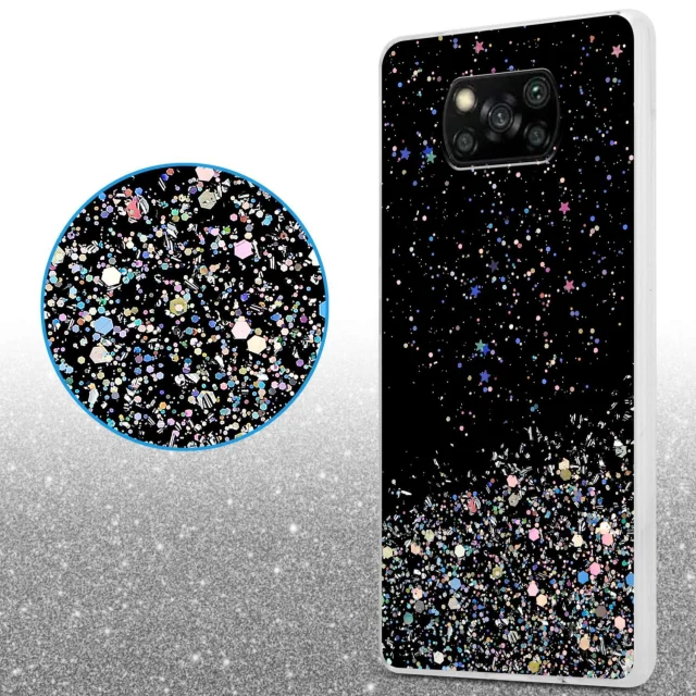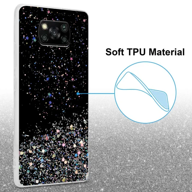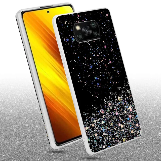 Ohišje, združljivo z Xiaomi POCO X3 NFC in črna z bleščicami - Zaščitni ovitek iz prožnega silikona TPU s svetlečimi bleščicami