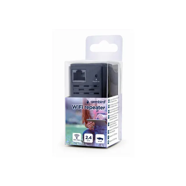 Kompaktni 300 Mbps WiFi ojačevalnik signala z vgrajenimi antenami. Podpira vse standarde IEEE 802.11b/g/n WiFi (omrežja 2,4 GHz). Hitrost prenosa podatkov do 300 Mbps po brezžičnem protokolu 802.11n. Največja varnost WLAN z WPA2, WPA in WEP (128/64). Hitra namestitev preko preprostega spletnega vmesnika ali funkcije WPS. Lahko ga nastavite kot brezžični ojačevalnik signala ali kot dostopno točko. Praktična LAN vrata  in LED prikaz stanja.
