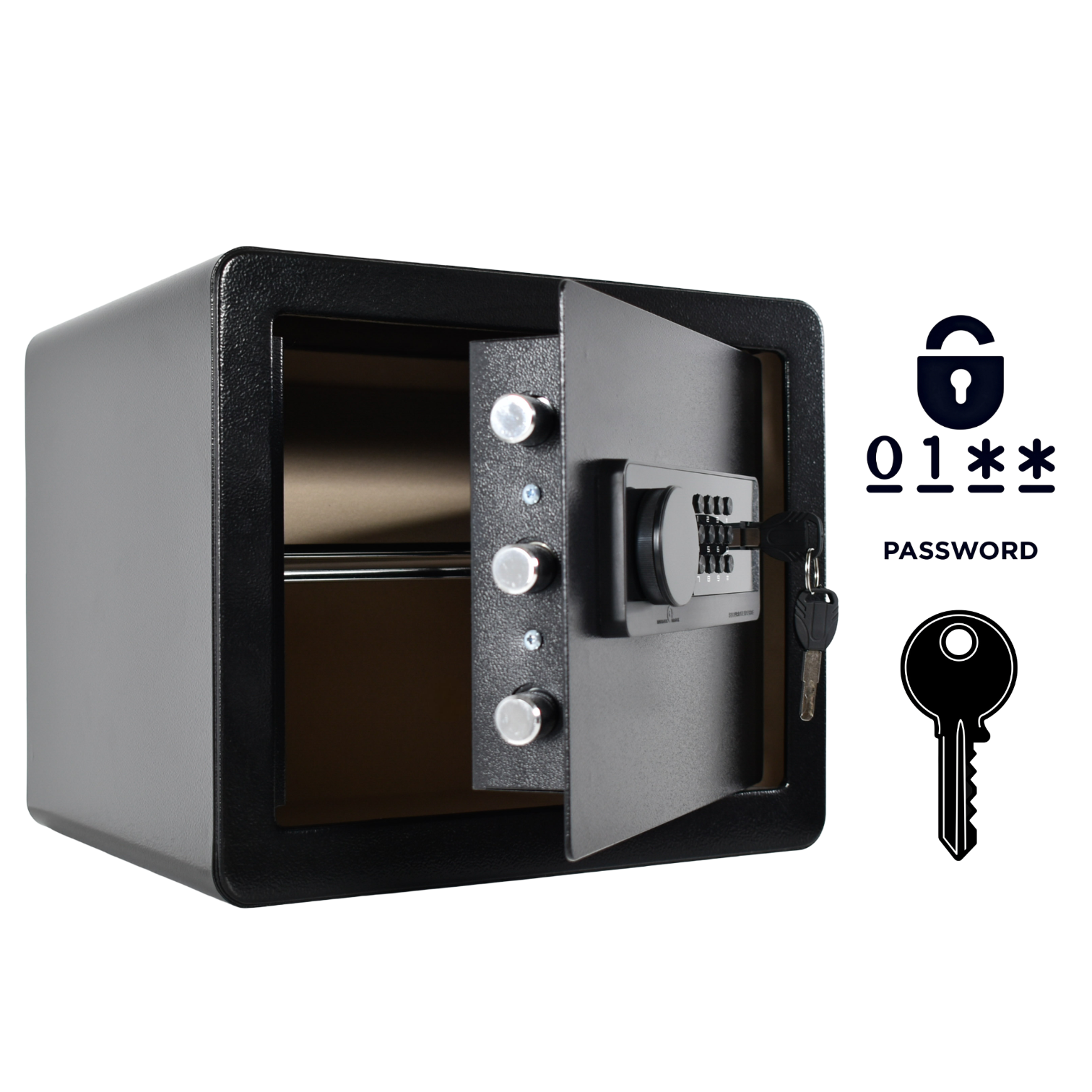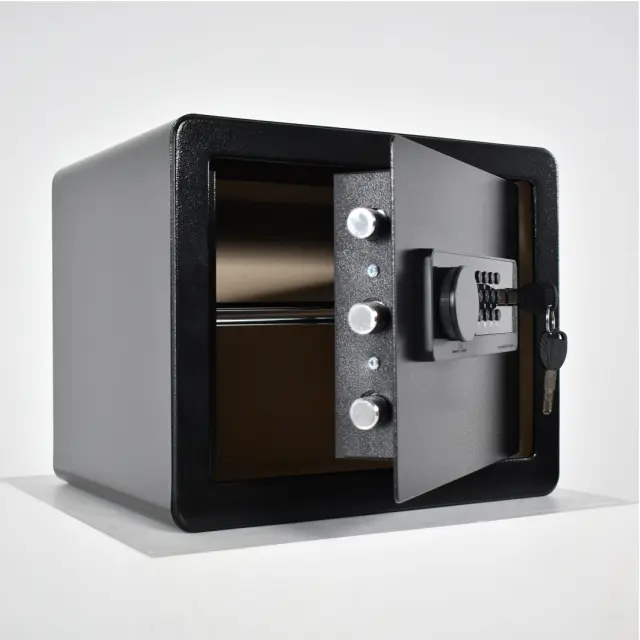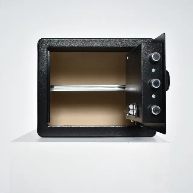 Oklepljen domači sef NIKCROP XA6-30 predstavlja zanesljivo rešitev za varno shranjevanje dragocenosti, pomembnih dokumentov in osebnih predmetov v vašem bivalnem ali delovnem okolju. Izdelek je zasnovan za vsakodnevno uporabo, kjer sta ključni diskretnost in preprosto upravljanje preko elektronske kode ali klasičnega ključa. Njegova premišljena zasnova omogoča enostavno namestitev v omaro ali na steno, kar zagotavlja, da so vaši predmeti vedno pospravljeni na enem mestu. S svojo kompaktno obliko in nevtralno črno barvo se diskretno vključi v vsak prostor, hkrati pa nudi učinkovito zaščito vsebine pred nepooblaščenim dostopom.