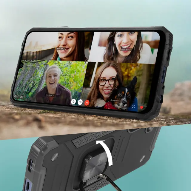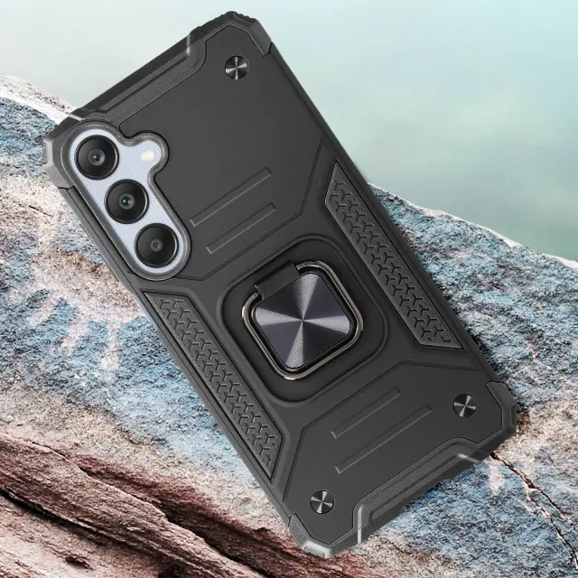 Oklepna torbica Samsung A25 5G Odporna proti udarcem s prstanom - črna, Črna