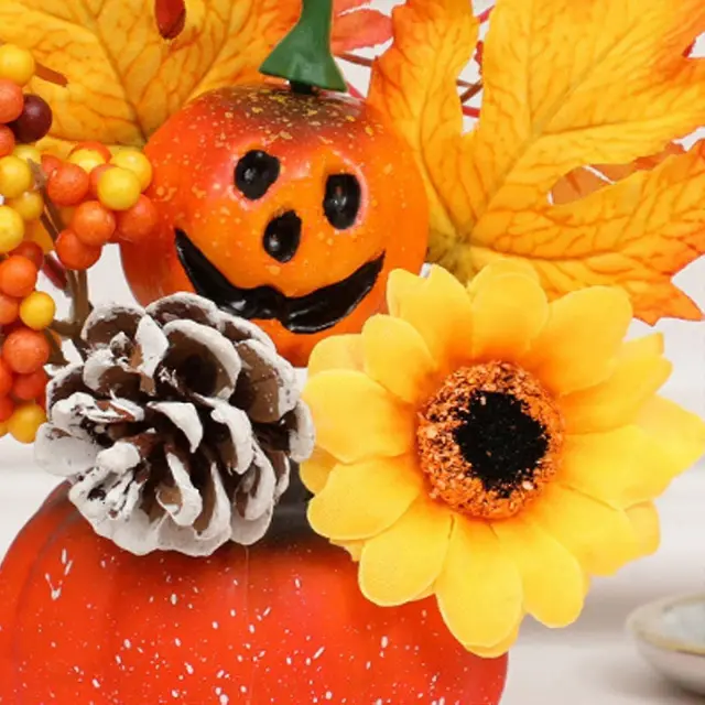 Okraski za dom za noč čarovnic – Simulacija cvetličnih okraskov za praznični čas, javorjev list, sončnica, buča, večbarvno, 23x18 cm