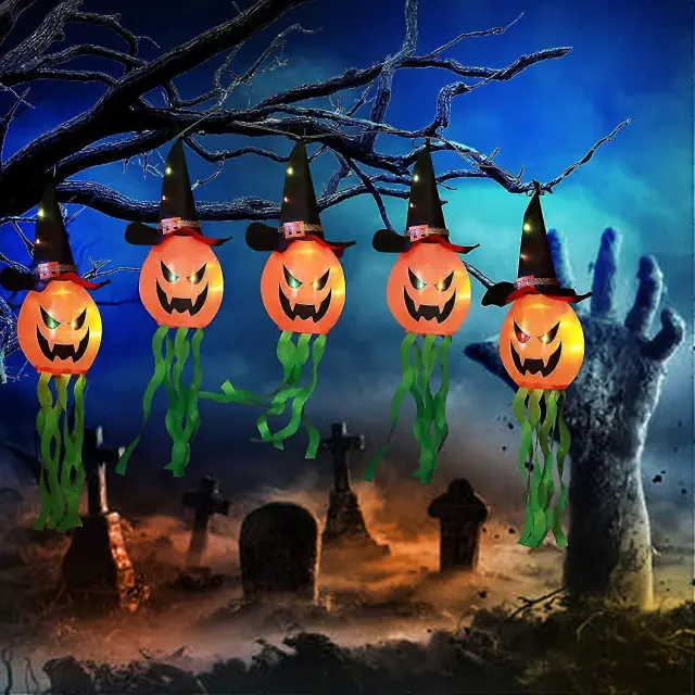 Okraski za noč čarovnic Luči 11,5 Ft 2 načina 5pcs Diy viseče barvne Led z utripajočimi mehurčki Pumpkin String Luči za notranje prostore