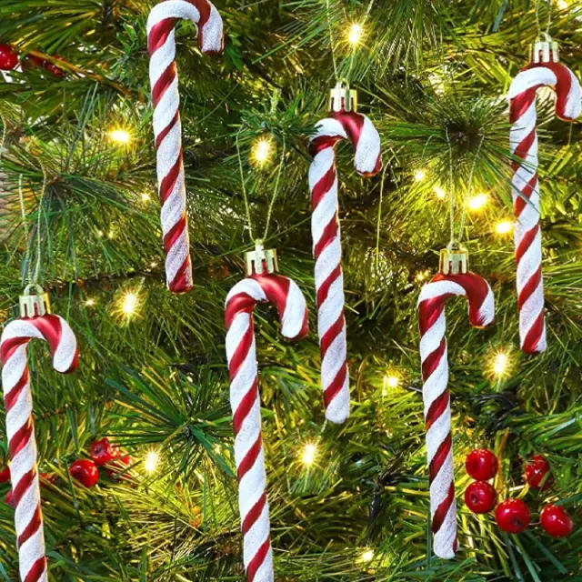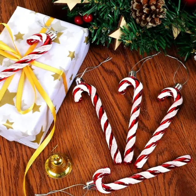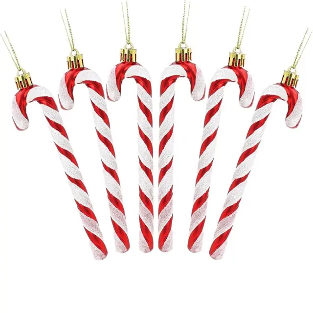 Okrasni bonboni v obliki palice (6 kosov) - praznični božični okraski Red