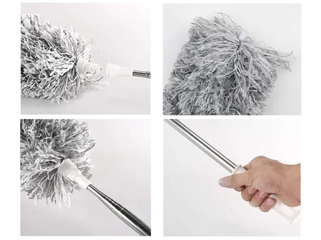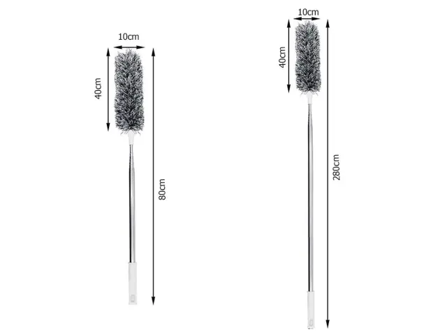 Kolikokrat ste se morali boriti s plezanjem po lestvi ali nevarno hojo čez pohištvo, da bi dosegli prašna mesta, medtem ko ste pometali prah s pohištva ali pometali strop trdovratne pajčevine? Odslej konec nepotrebnih akrobacij med čiščenjem. S to krtačo za prah lahko brez posebnega truda dosežete skoraj vsako mesto, ki vas zanima! Kako se ta ščetka za prah razlikuje od drugih ščetk? To, da je teleskopska in lahko v trenutku iz standardne metle naredimo res dolgo metlo!