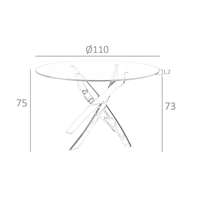 Okrogla jedilna miza iz kaljenega stekla in roza jekla