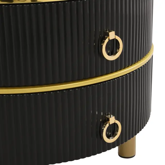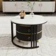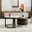 Okrogla klubska mizica 2 v 1 iz MDF s sijočo površino in belo marmorno površino, 2 predala, 70*70*46 + 50*50*40 cm