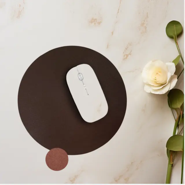 Okrogla podloga za miško iz pravega usnja za gladko uporabo Red