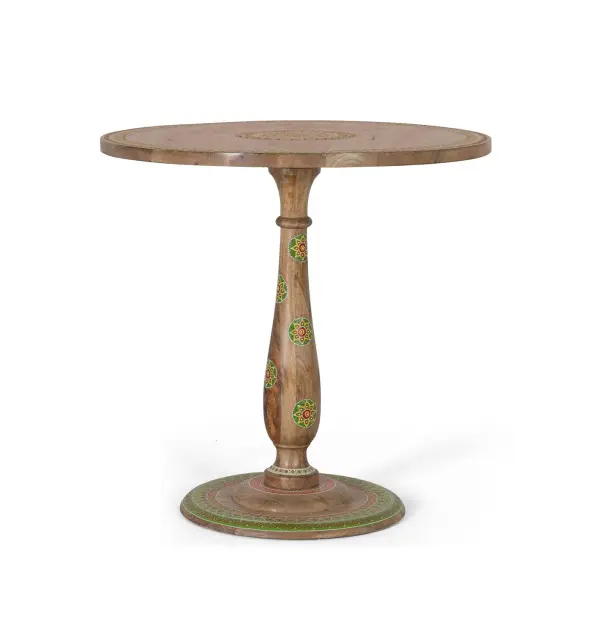 Okrogla ročno poslikana jedilna miza iz mangovega lesa