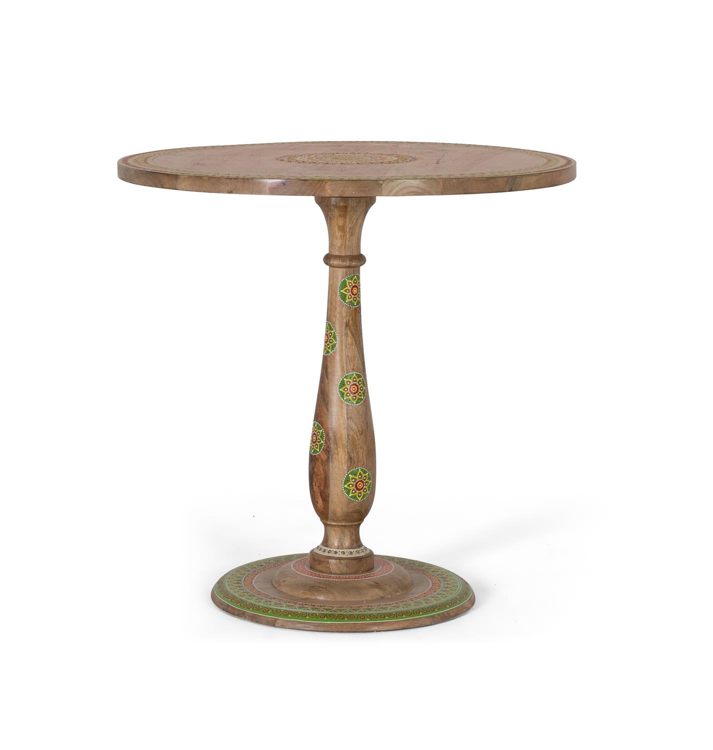 Okrogla ročno poslikana jedilna miza iz mangovega lesa