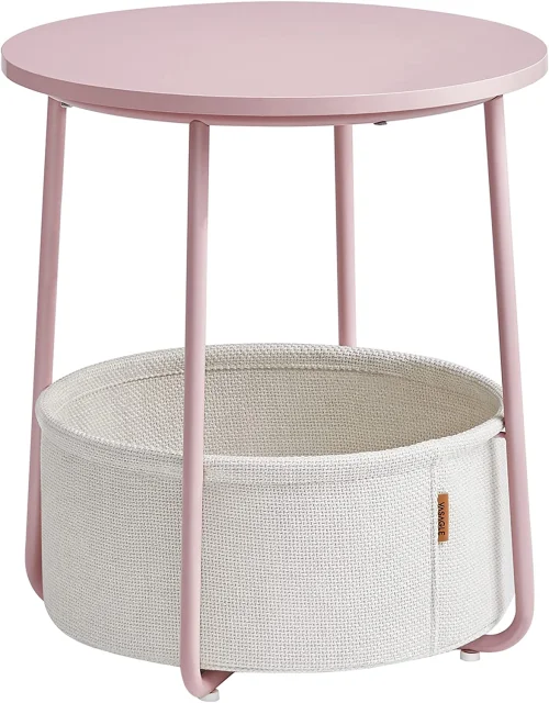 Okrogla stranska mizica, majhna klubska mizica, mizica za dnevno sobo s košaro iz blaga, prostor za shranjevanje za dnevno sobo, spalnica, moderna, pa