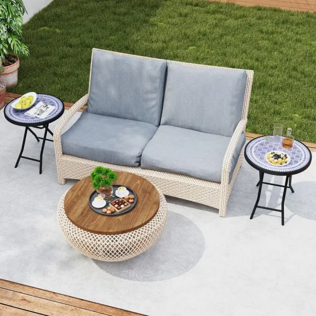 Vsestranska stranska mizica: Ta okrogla stranska mizica je idealna za notranjo in zunanjo uporabo ter služi več namenom. S privlačnim dizajnom in visoko funkcionalnostjo je popoln dodatek na vrtu, ob bazenu, v dnevni sobi in še kje.