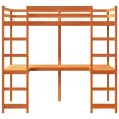 Ta vsestranska dvignjena postelja združuje enojno posteljo in pisalno mizo ter tako zagotavlja udoben prostor za spanje in prostoren delovni prostor. To je idealna izbira za domove z omejenim prostorom.Stabilen in dolgotrajen okvir: Trdna borovina je znana po svoji trdnosti in trajnosti. Ravni vzorci in značilni vozli prispevajo k njenemu rustikalnemu čaru.Povečajte izkoriščenost prostora: Ta posteljni okvir ima pod seboj pisalno mizo, ki učinkovito izkorišča prostor pod posteljo in zagotavlja udoben prostor za delo in učenje. To je idealna izbira za manjše ali bolj omejene prostore.Zlahka se povzpnete in spustite: Ta posteljni okvir ima vgrajeni dve lestvi, ki uporabnikom omogočata udoben dostop za plezanje navzgor in navzdol.Varovalne ograje za večjo varnost: Ta posteljni okvir je opremljen z varovalnimi ograjami, ki preprečujejo, da bi med spanjem padli s postelje.Podnožje z letvami za optimalno podporo: Za podporo in zračnost ležišča je posteljni okvir opremljen z letvenim dnom.Opozorilo:Za preprečitev prevračanja je treba ta izdelek uporabiti s priloženo napravo za pritrditev na steno.Dobro je vedeti:Vzmetnica ni priložena tej postelji. Ponujamo različno izbiro ležišč. V naši trgovini si lahko ogledate ustrezne vzmetnice.Vijaki in čepi za notranjost stene niso priloženi. Svetujemo vam, da poiščete in uporabite vijake in zatiče, ki so primerni za vaše stene. Če niste prepričani, se lahko posvetujete s strokovnjakom. Preberite in upoštevajte vse korake v navodilih.Barva: Voščeno rjavaMaterial: Trdna borovinaCelotne dimenzije: 195,5 x 82,5 x 190,5 cm (D x Š x V)Višina spalnega prostora, merjena od tal: 155,5 cmVišina zaščitne ograje: 26 cmVelikost primerne vzmetnice: 75 x 190 cm (Š x D) (vzmetnica ni priložena)Največja debelina vzmetnice: 12 cmNajvečja nosilnost (z vzmetnico): 80 kgZ letvenim podomZ 2 lestvamaPotrebno sestavljanje: Da