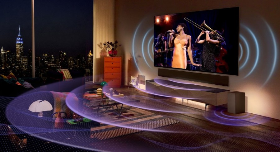 Desetletje inovacij je privedlo do AI Sound Pro tehnologije, ki virtualno simulira 9.1.2 hišni kino zvočni sistem.
