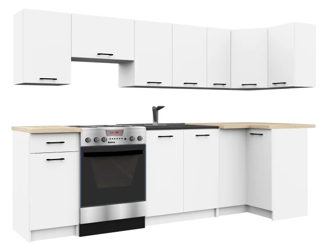 Bela sprednja stran se lepo kombinira z mat črnim ročajem, ki dodaja eleganco omari. Univerzalna narava pohištva ga naredi primernega za vsako kuhinjo, poleg svojih vizualnih lastnosti pa je element opreme kuhinjskega interierja, ki ga ponujamo, značilen po visoki kakovosti in skrbnem delu. Pohištvo, izdelano iz trpežnih in obrabno odpornih materialov, prijetno preseneča s svojo funkcionalnostjo. To je predlog, ki ga lahko samozavestno uporabite tako za velike kot za majhne kuhinje. Izdelek je na voljo po ugodni ceni.