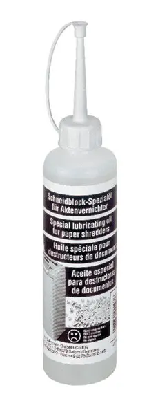 - olje za uničevalce dokumetov - 250ml - za pravilno vzdrževanje rezalnih nožev - podaljša življensko dobo uničevalnika