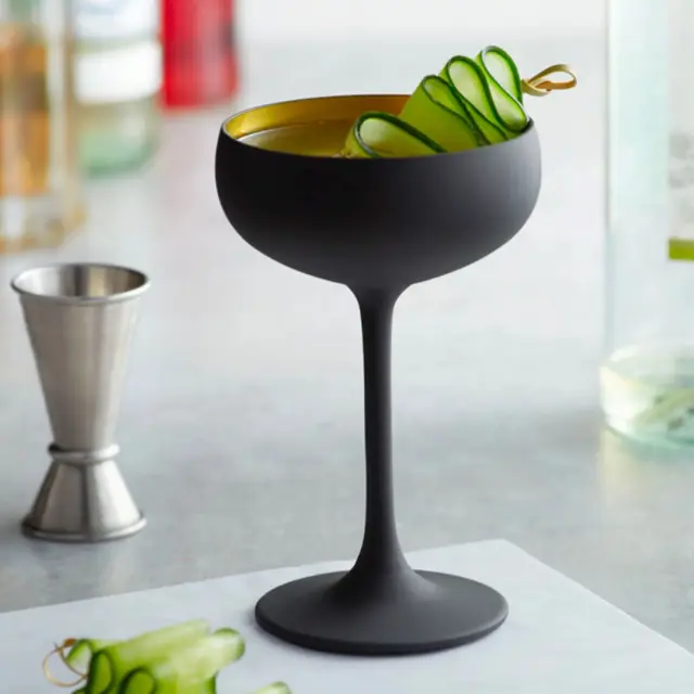 V elegantnih kelihih - kupah Olympic postrezite vaš najljubši koktejl ali pa v njih nazdravite s penino. Zahvaljujoč elegantni črno-zlati mat kombinaciji so ti kelihi Stölzle iz kristalnega stekla linije Olympic zares nekaj posebnega – upoštevajo aktualne trende v notranjem dizajnu in modernem življenjskem slogu. Navdihnili so že mnoge – tako v barih in restavracijah, kot tudi na domačih zabavah in praznovanjih. Z drznimi kombinacijami kovinskih tonov in intenzivne barve vas bodo zagotovo navdušili
