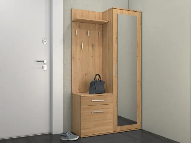 • Omaro z ogledalom, omarico in obešalnik lahko namestite blizu drug drugega ali jih odmaknete.