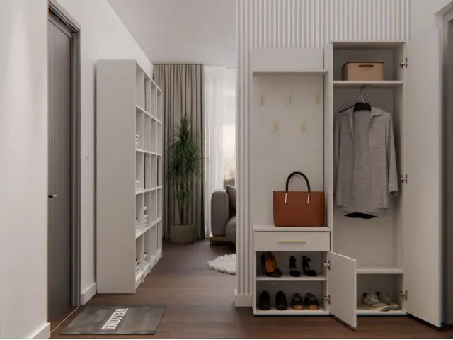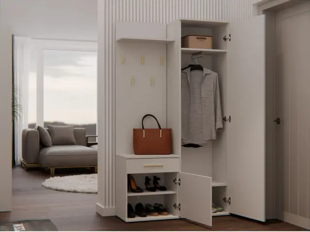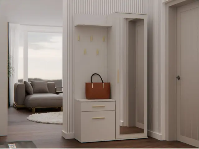 • Omaro z ogledalom, omarico in obešalnik lahko namestite blizu drug drugega ali jih odmaknete.