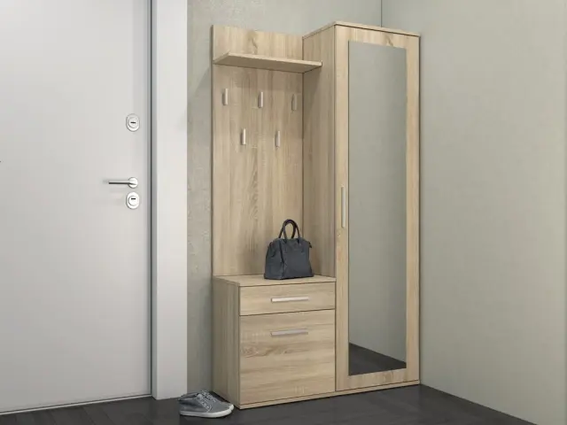 • Omaro z ogledalom, omarico in obešalnik lahko namestite blizu drug drugega ali jih odmaknete.