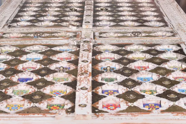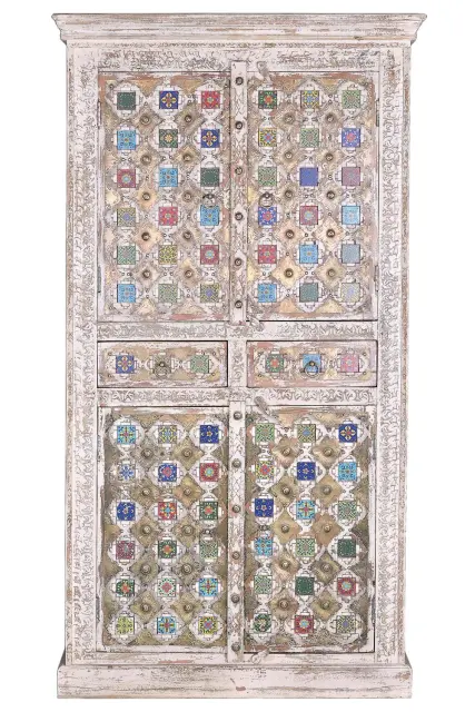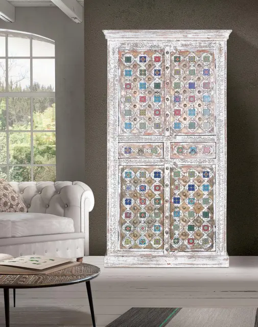Omara iz mangovega lesa s keramičnimi in bronastimi detajli