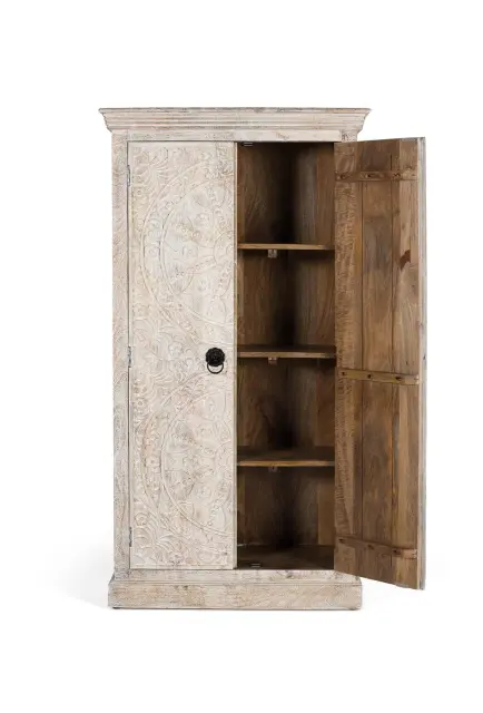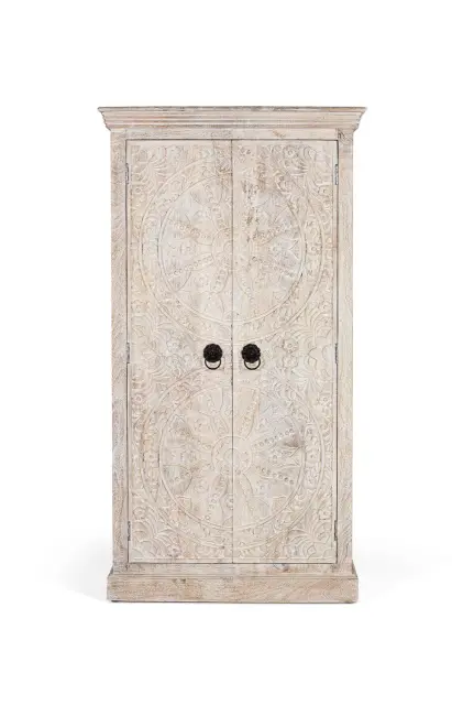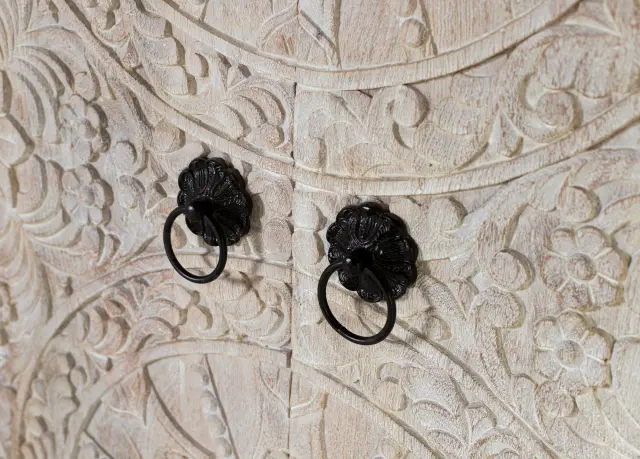 Omara iz mangovega lesa z izrezljanimi vrati v etničnem slogu