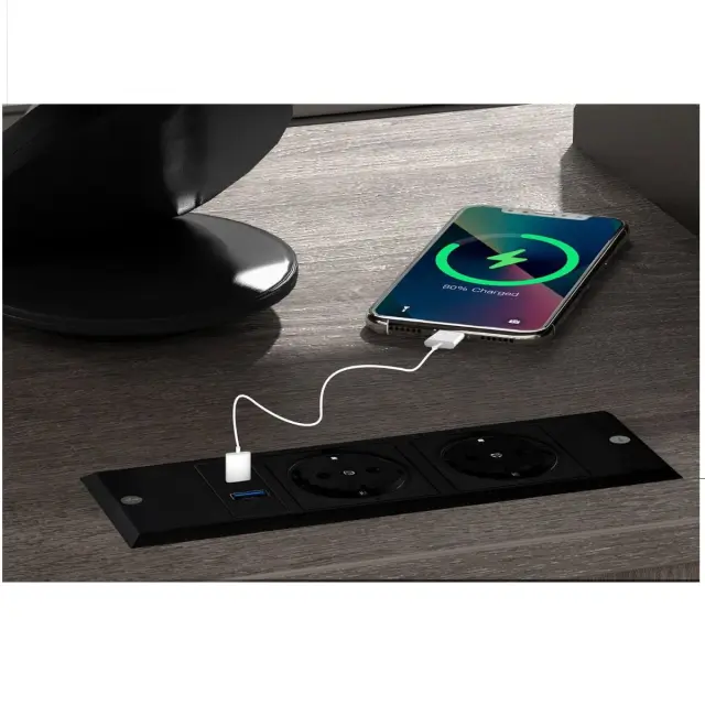 Vgrajena polnilna postaja z 2 vtičnicama, 2 priključkoma USB in 1 priključkom tipa C