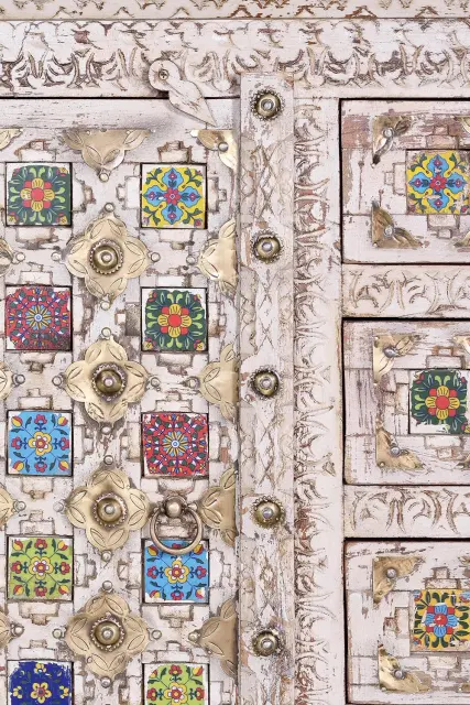 Omarica iz mangovega lesa s keramičnimi in bronastimi detajli