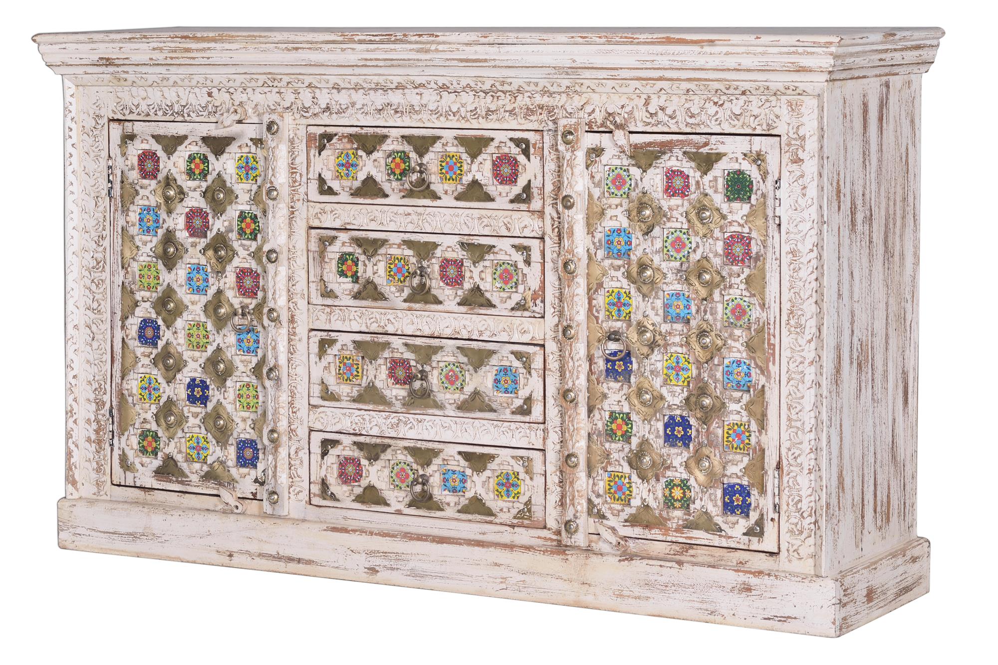 Omarica iz mangovega lesa s keramičnimi in bronastimi detajli