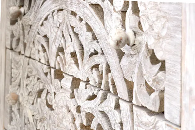 Omarica iz mangovega lesa s staranimi belimi kovinskimi nogami
