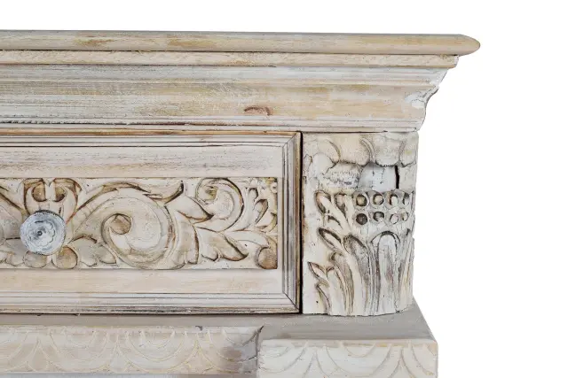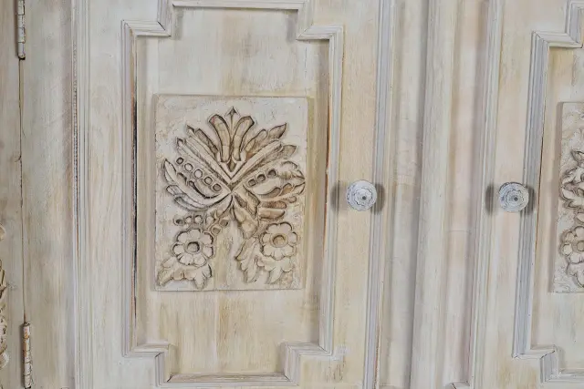 Omarica iz mangovega lesa z dvema vratcema in ročno izrezljanim predalom