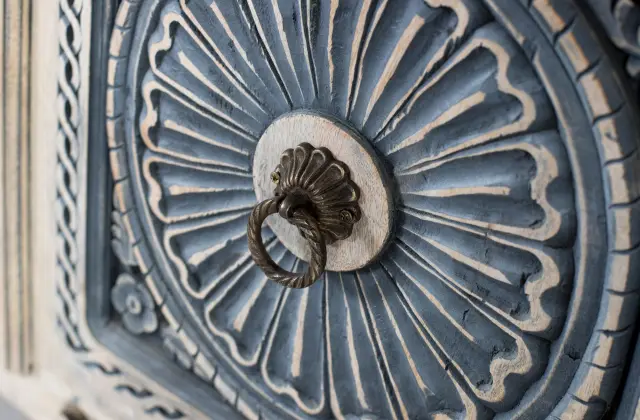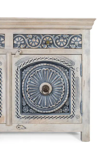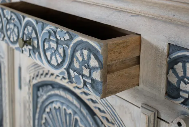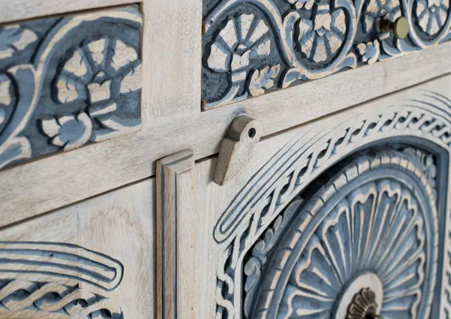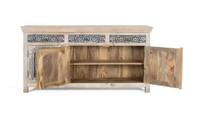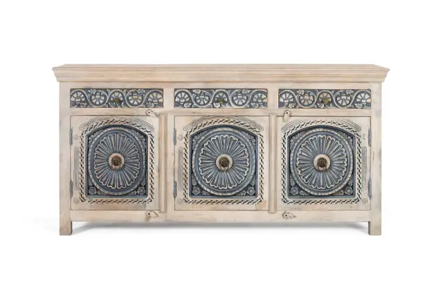 Omarica iz masivnega mangovega lesa s tremi predali in tremi vrati