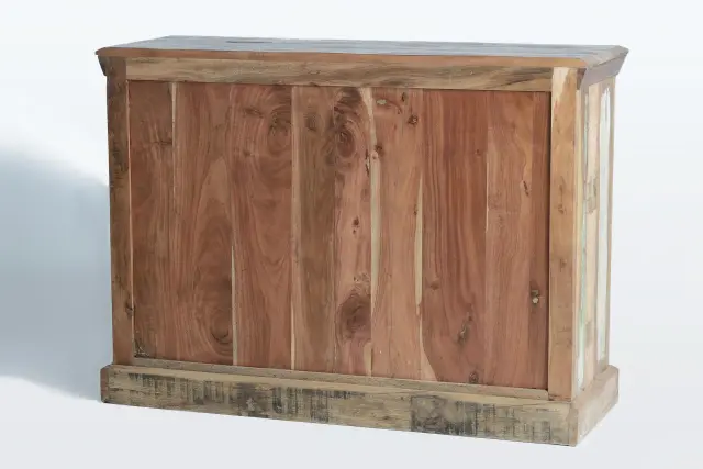 Omarica iz recikliranega lesa in večbarvnih kovinskih detajlov