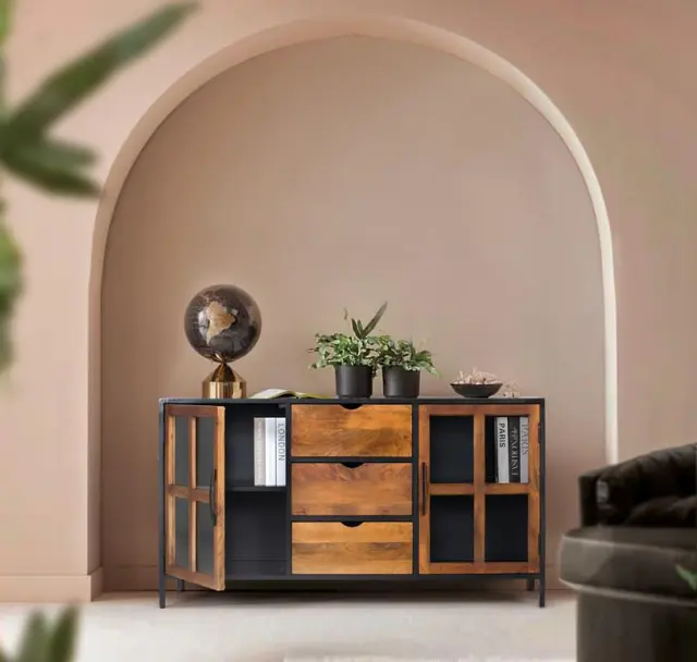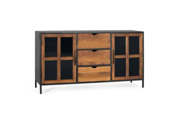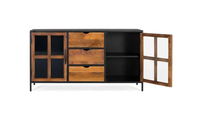Omarica s 3 predali in 2 vrati s kovinskim okvirjem in steklenimi vrati