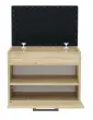 Udobna omarica za čevlje z oblazinjenim sedežem in predalom za pripomočke.  Omarica ima krilna vrata, za katerimi je polica.