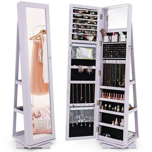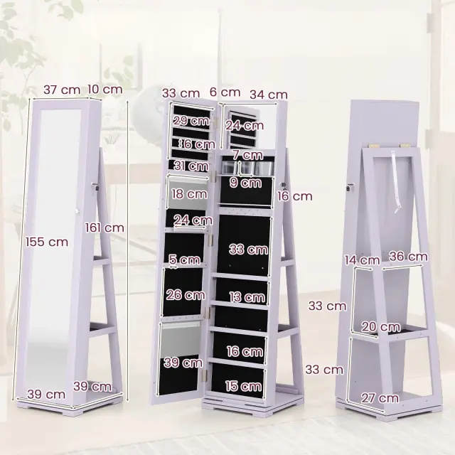 Omarica za nakit z ogledalom po celotni dolžini in vgrajenim ogledalom za ličenje, vijolična